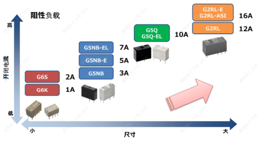 一般來講,接點容量越大,繼電器的尺寸也會越大。但是歐姆龍能在保持產品大小的同時做出一系列高容量的繼電器。
