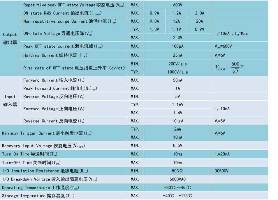 (Triac Relay 光可控硅繼電器 DIP7/SMD7),Product Model產(chǎn)品型號:BC2213/BC3213/BC5213,Contact Form觸點形式:1a(Zero-on 過零型),Ambient Temperatur 25'C,測試環(huán)境溫度 25℃℃