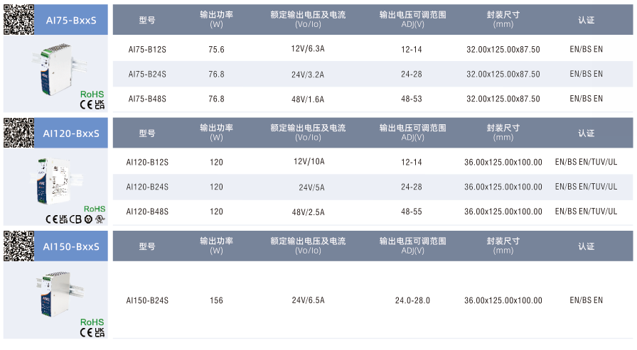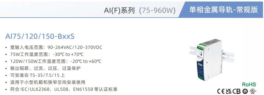 開(kāi)關(guān)電源單相金屬導(dǎo)軌(常規(guī)版)AI(F)系列(75-980W)
