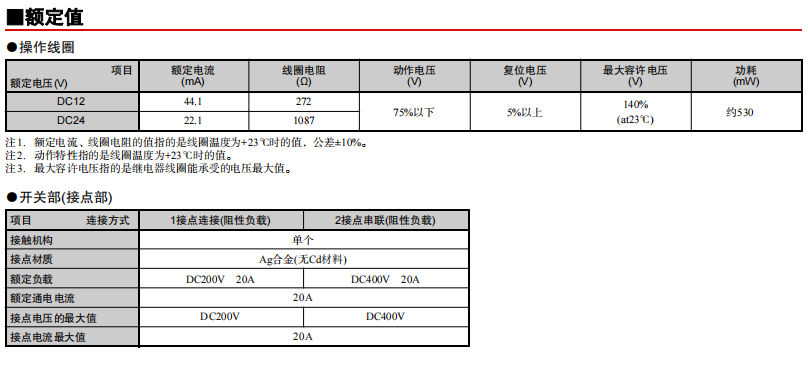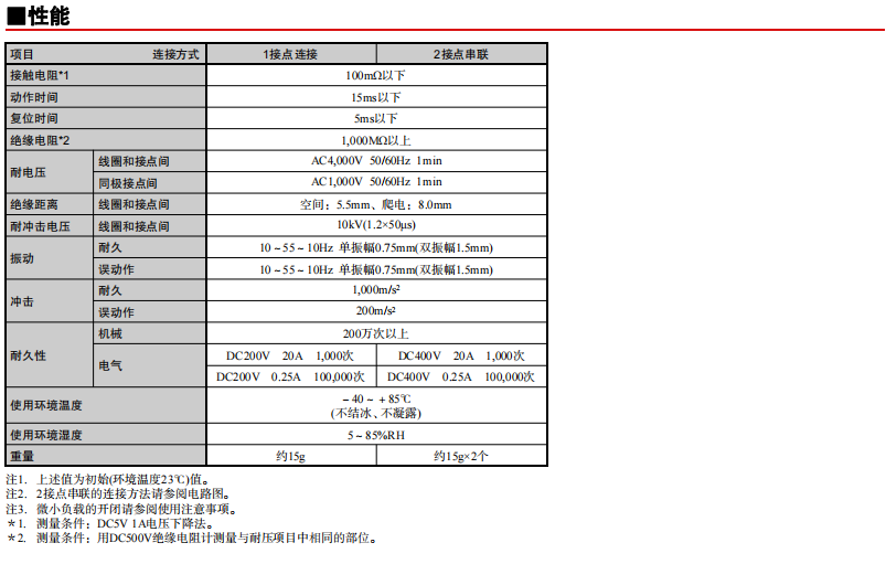 通過產品的2接點串聯(lián)實現了DC400V 20A雙向開閉 寬度15.2mm的纖細尺寸實現了無論極性的DC200V 20A開閉 功耗530mW的高靈敏度 (保持電壓50%的使用環(huán)境下實現更好的節(jié)能效果) 線圈和接點間的絕緣距離5.5mm以上,耐沖擊電壓10kV的高絕緣性 串聯(lián)連接取得了UL/TüV/CQC認證