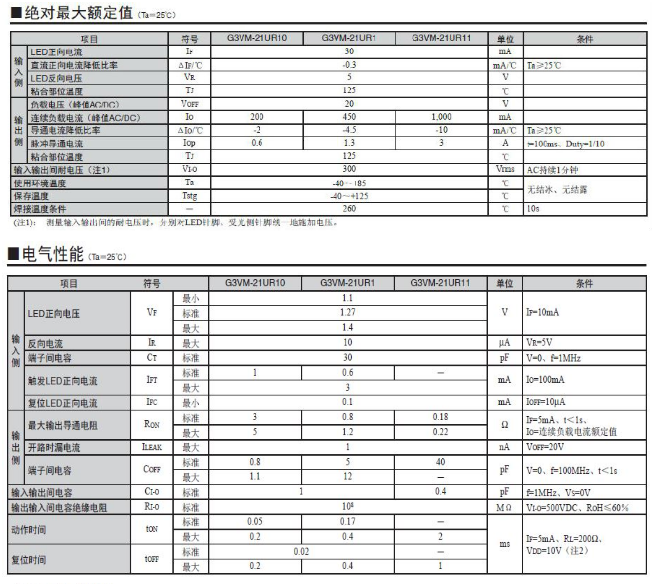 G3VM-21UR11/21UR10 光耦繼電器