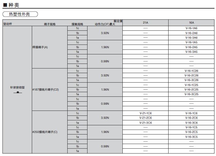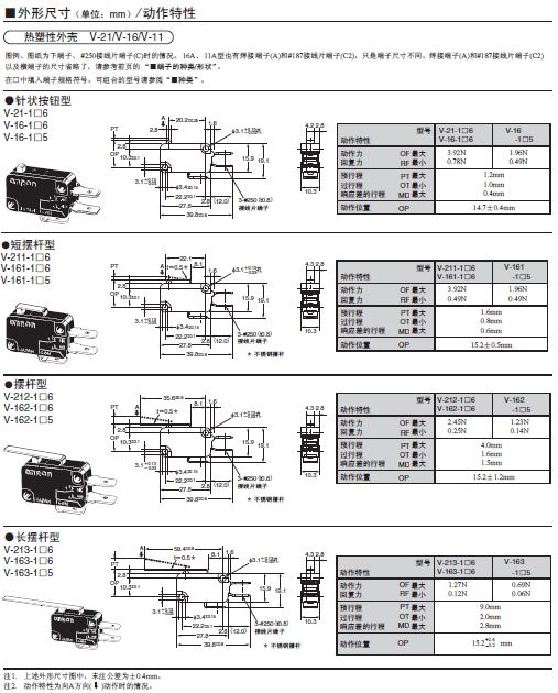 V小型基本開關(guān)小型、高容量開關(guān)