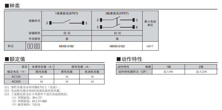 A8M 小型船型開關 實現16A開關性能的小型船形開關 小型、16A的開關性能。 可進行一觸式安裝。 符合UL、cUL認證,EN標準適用品。