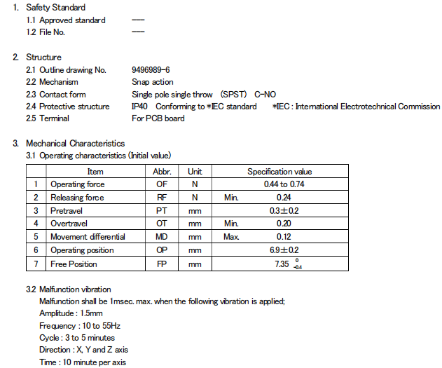 印刷基板用端子還備有獨(dú)立端子、直角端子。鼠標(biāo)開(kāi)關(guān)的型號(hào)有:
