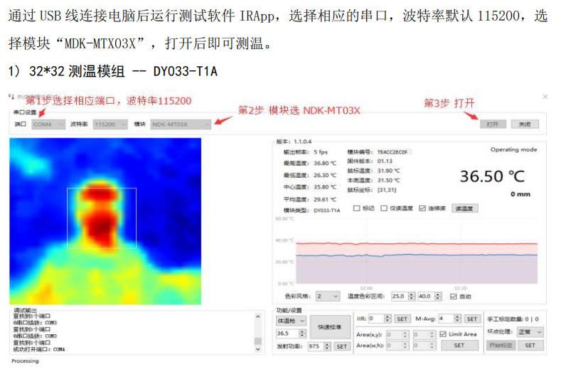 采用串口通信協(xié)議,波特率默認(rèn)115200,8數(shù)據(jù)位,1停止位,無校驗(yàn)。其中用戶控制端是主機(jī),測(cè)溫模組是從機(jī),采用一發(fā)一收。協(xié)議輸出數(shù)據(jù)有兩種查詢命令方式,一是只查詢?nèi)梭w溫度,二是查詢陣列溫度數(shù)據(jù)。