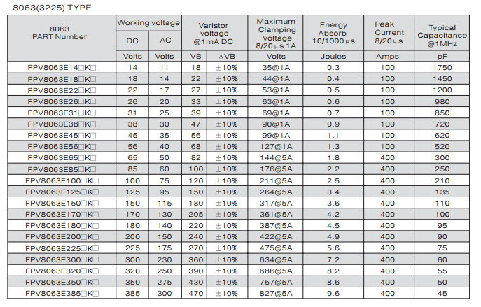 多層片式壓敏電阻器 FPV8063E150SKB
